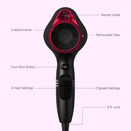 Panasonic Ehna65k Moisture Infusion Nanoe Hair Dryer With 3 Attachments, Pink, Matte Black & Pink, 950 Grams