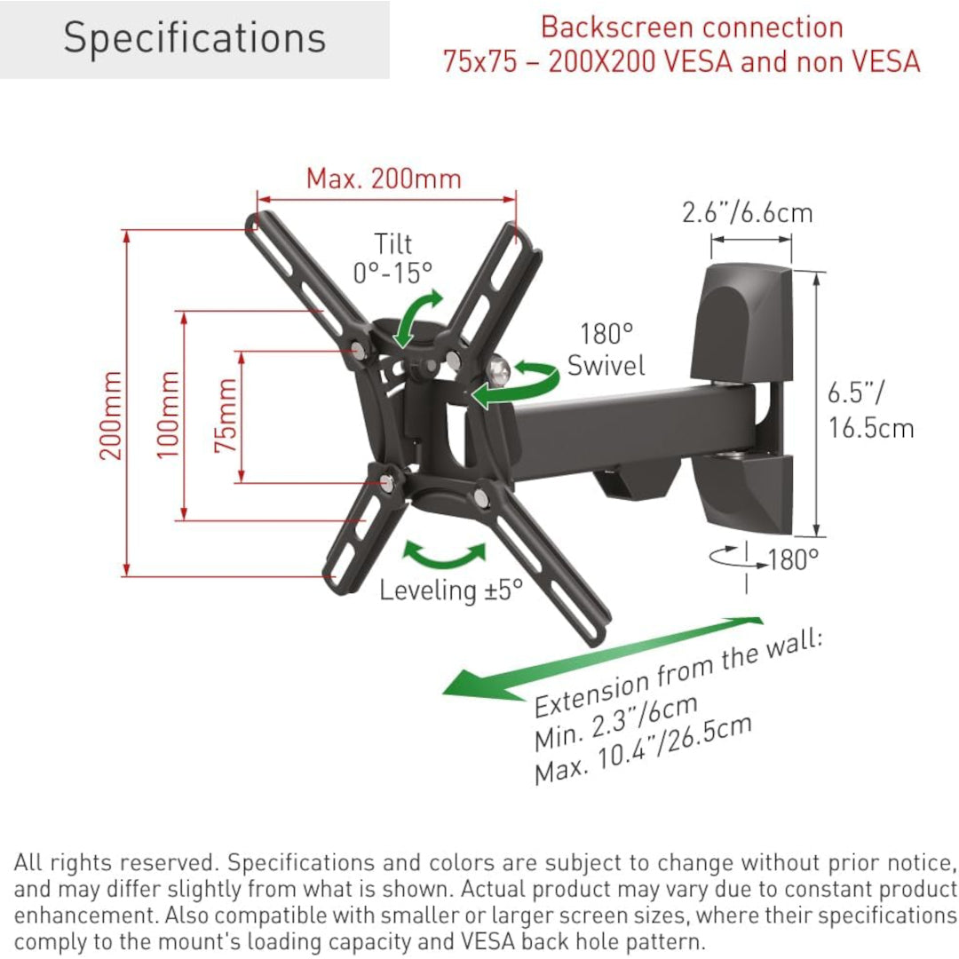 • Support mural TV entièrement pivotant et inclinable compatible avec presque tous les écrans LCD/OLED, plats et incurvés de 48 à 99 cm (7,5" à 39 pouces)