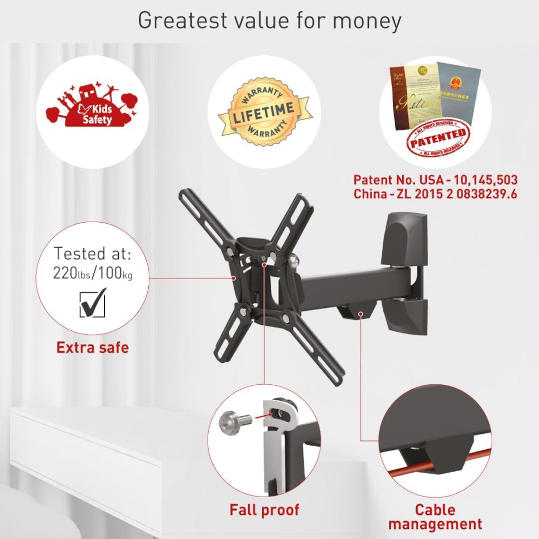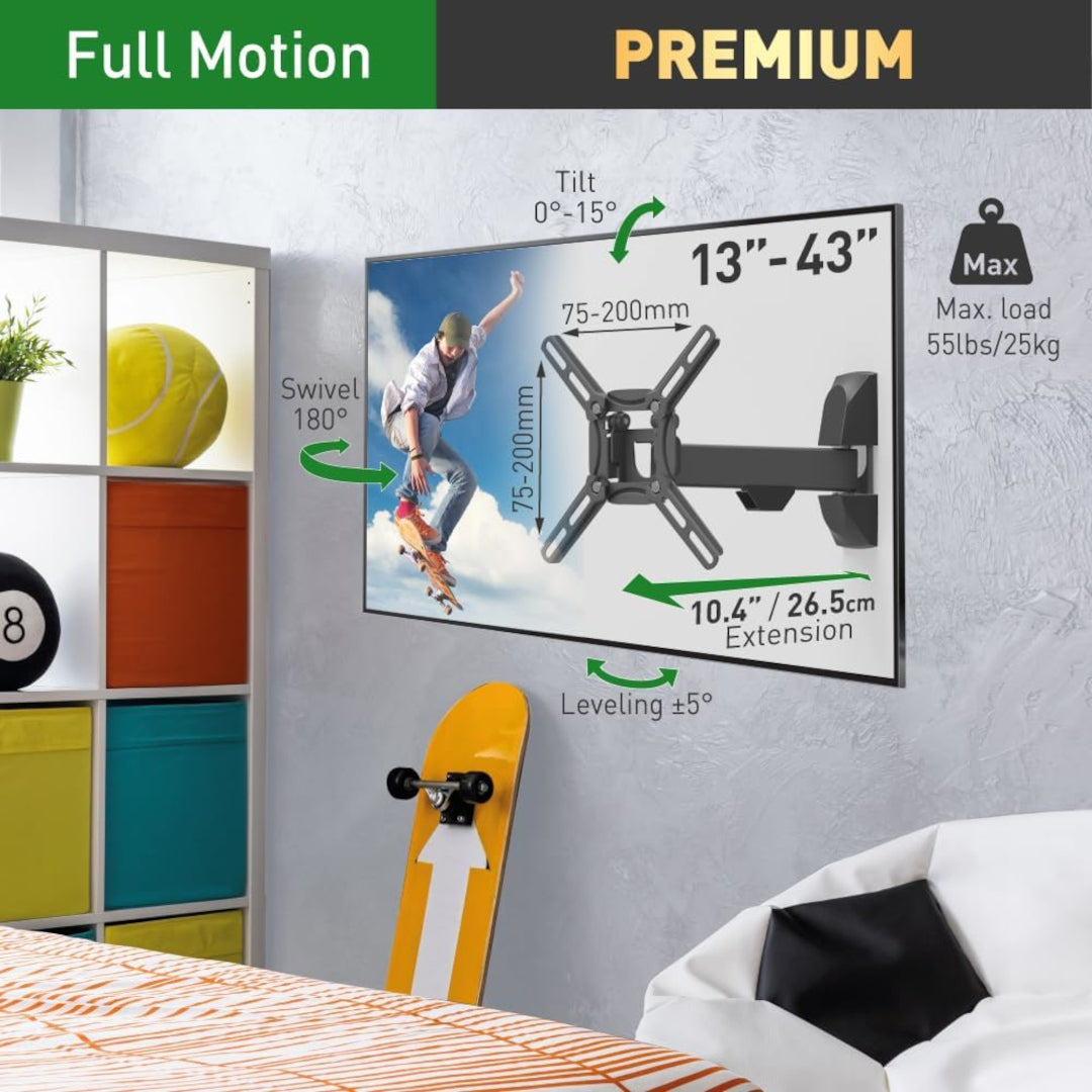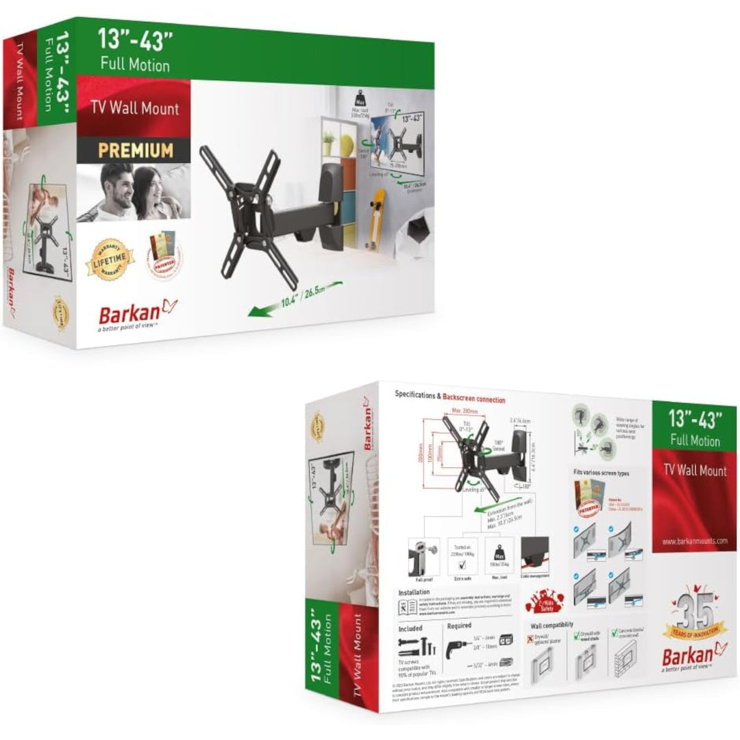 Barkan - Support mural pour téléviseur Full Motion 13-43 pouces