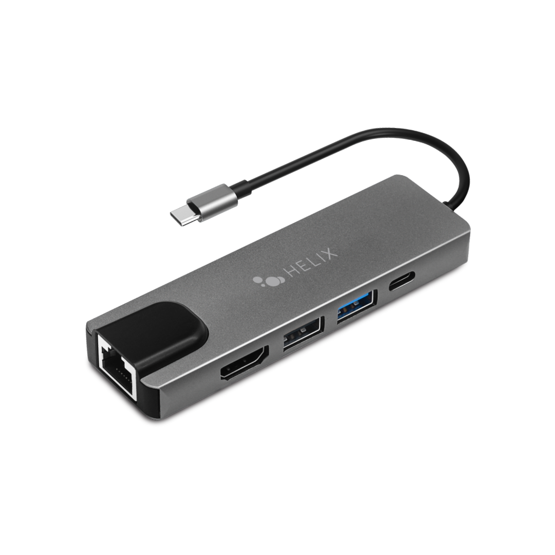 Développez le port USB-C de votre ordinateur portable et de votre ordinateur avec le hub USB-C Helix 7-en-1. Il est conçu pour comporter des ports pour vos besoins audio, vidéo, de chargement et de transfert de données.