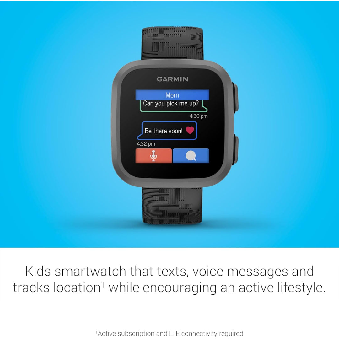 - Real-time location tracking lets you check in on your child’s whereabouts through the Garmin Jr. app on your compatible smartphone and even receive notifications when your child enters or leaves parent-defined boundaries (active subscription and LTE connectivity required)