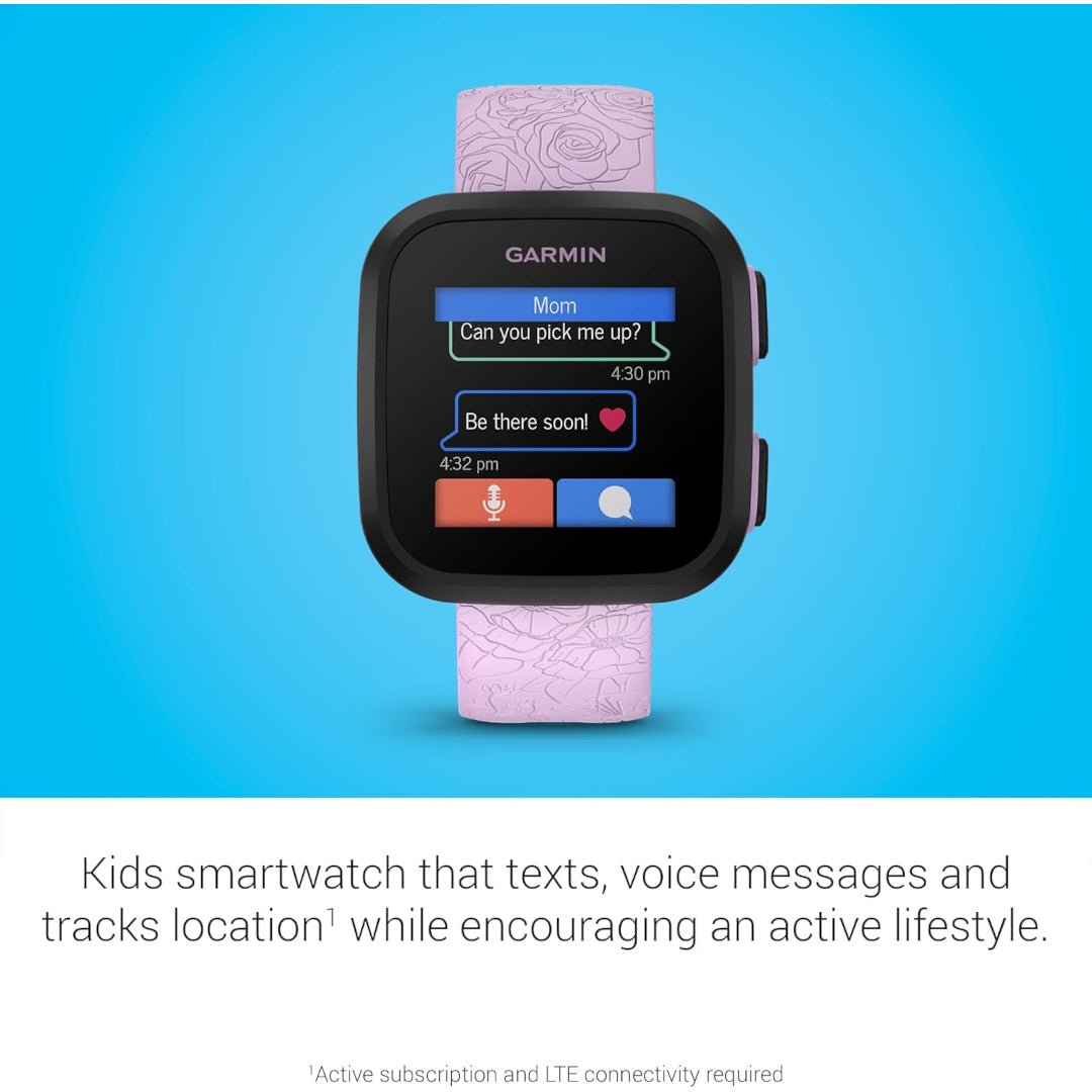 Garmin Bounce™, Kids Smartwatch, Two-Way Text and Voice Messaging, Location Tracking, Lilac Floral