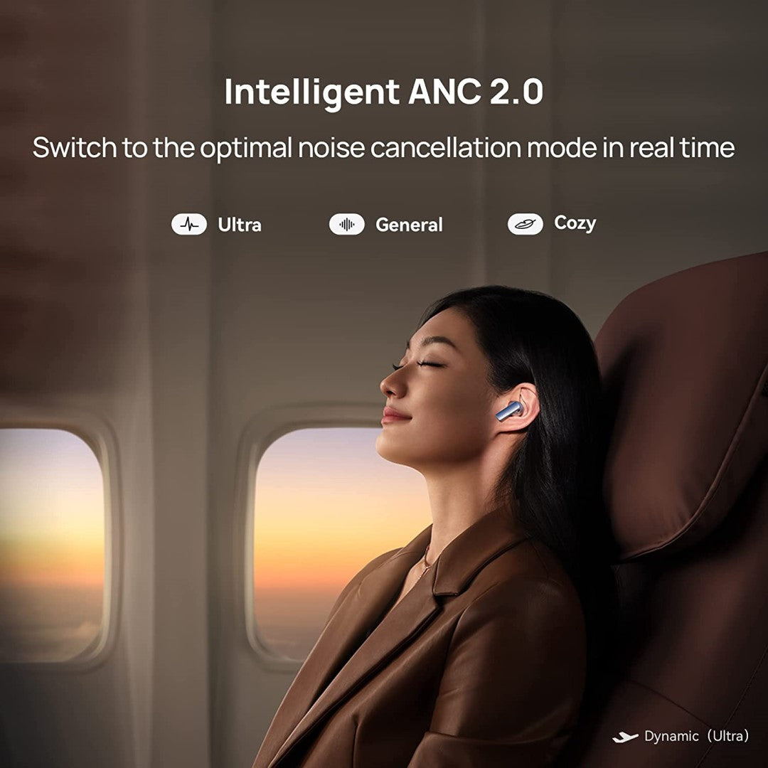 The intelligent dynamic ANC 2.0 will switch your earbuds to the optimal noise cancellation mode in real time, with its ability to detect your ear canal structure, wearing status, and environmental noise, so that each note rings true. You'll find that even airplane cabins are blissfully free of unwanted noise.