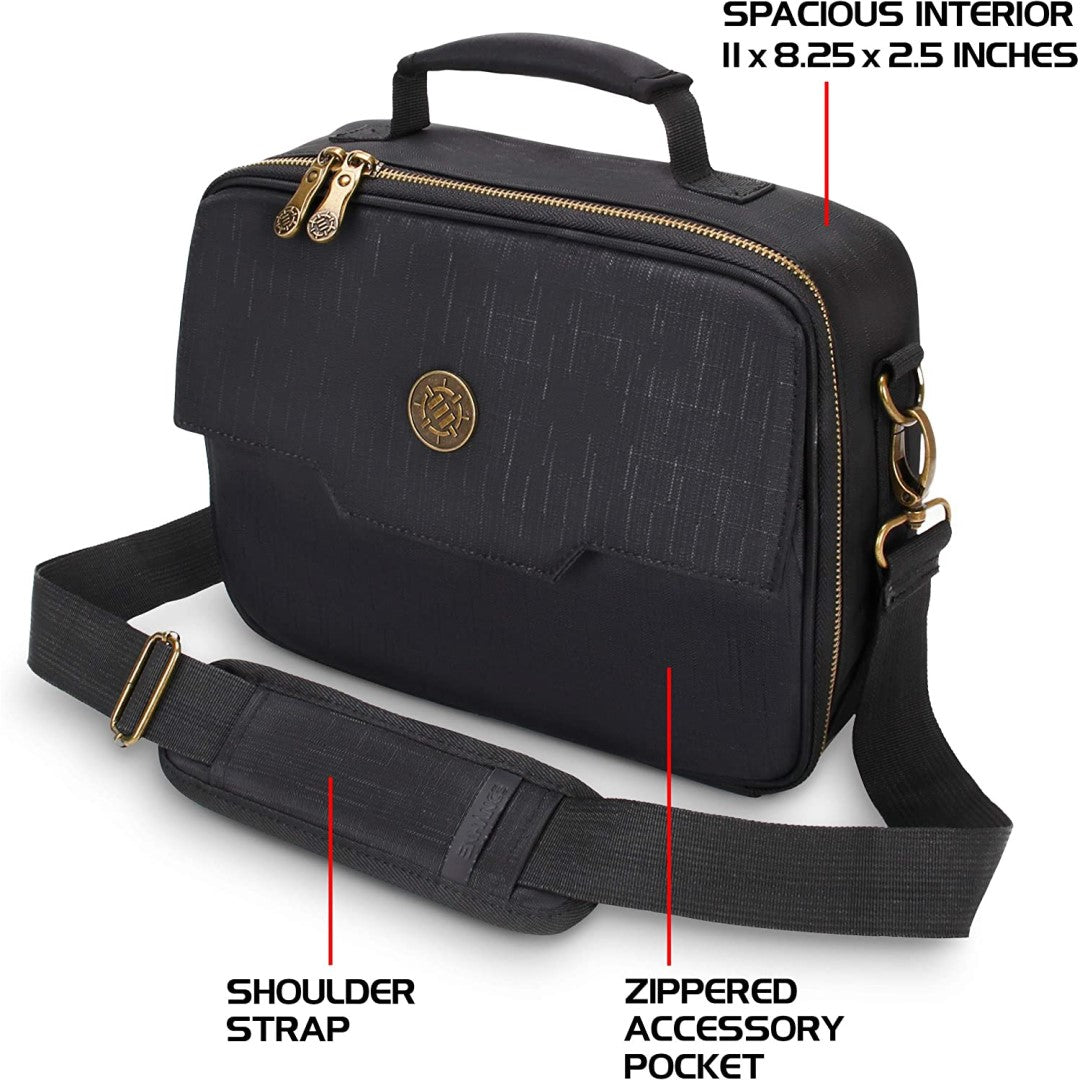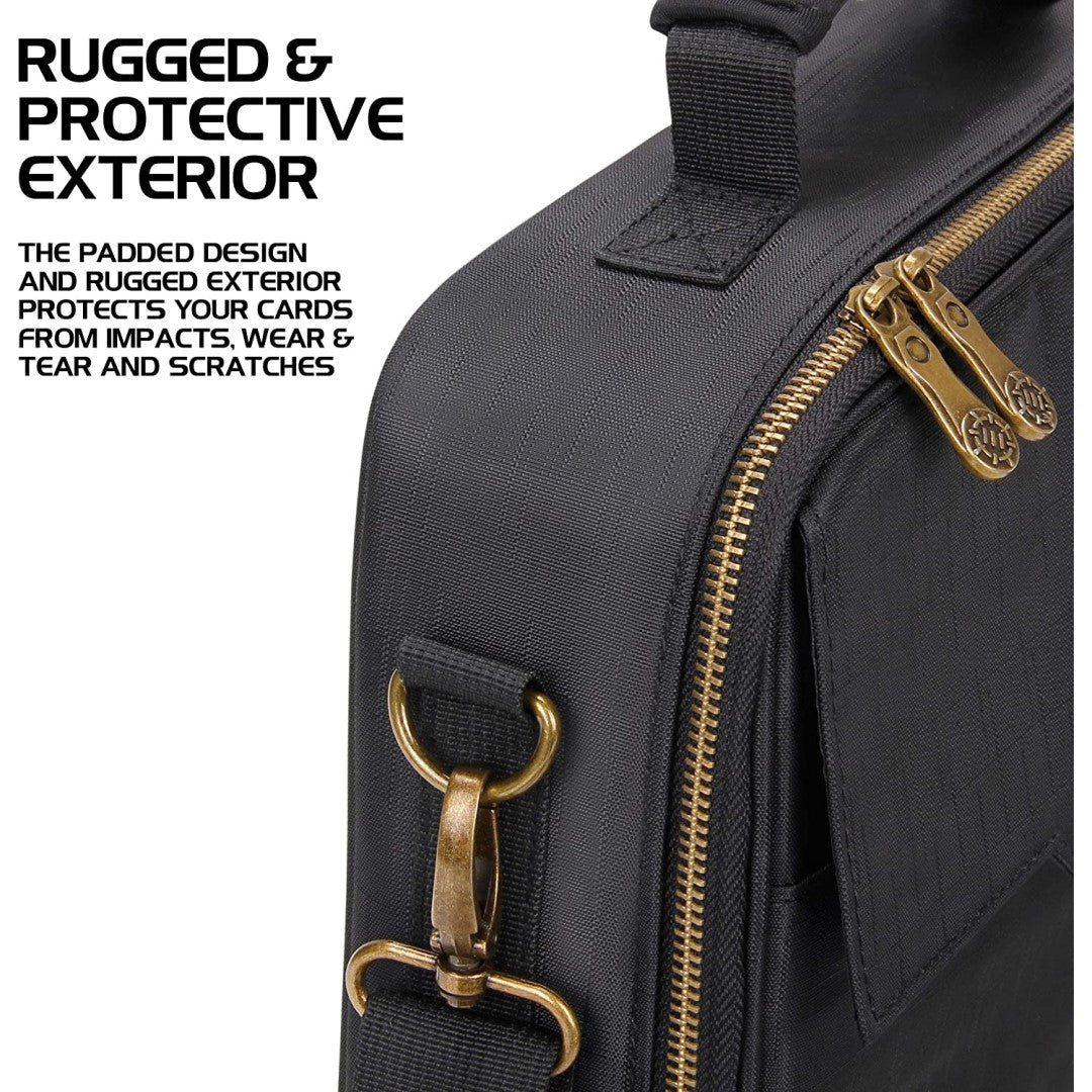 Store and protect your favorite cards with the ENHANCE Tabletop series travel bag. A customizable interior with a scratch resistant lining allows you to create various sized compartments to store loose cards, commander deck cases, BCW storage boxes, and much more while keeping your collection in pristine condition.