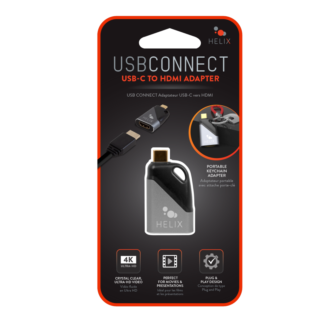 Easily connect your USB-C device to an HDMI display with the Helix USB-C to HDMI Travel Adapter. This ultra portable adapter is designed to go on your keychain for on-the-go use.