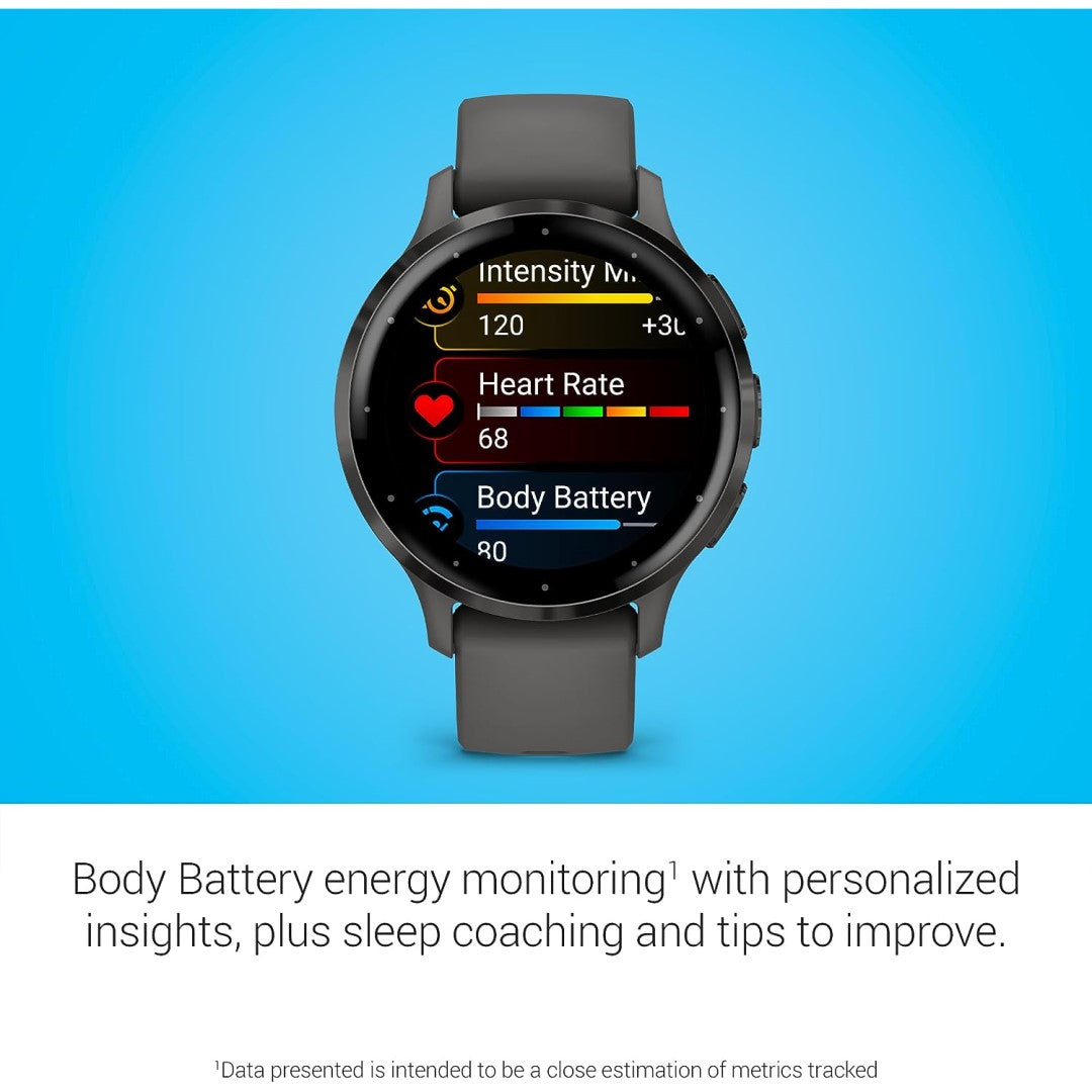 Garmin Venu 3S, Slate Stainless Steel Bezel with Pebble Gray Case and Silicone Band
