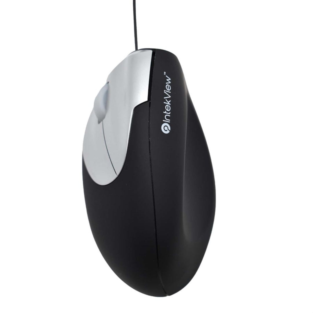 The Vertical IntekView mouse for Left Handed was conceived to reduce the risk of pain conducive by arm- twisting motion during the use of a classic mouse. To prevent injury, the hand must completely be relaxed. Fingers must also be relaxed and the position of the hand halfway between a closed fist and an extended hand. The shape of the IntekView mouse supports your hand in a completely relaxed position. It eliminates the twisting of forearm and the tensing of tendons. It is also noted to suit hands from the largest to the smallest.