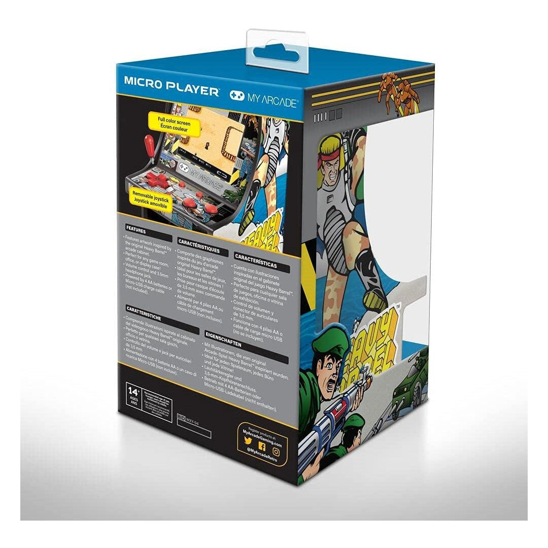 This MY ARCADE® Micro Player™ features the classic game by DATA EAST®, HEAVY BARREL™. Rescuing hostages, infiltrating enemy lairs, and collecting pieces to create the ultimate super weapon - this is Heavy Barrel™! First introduced in 1987, this multi-directional scrolling game has continued to be a favorite of the shoot-em-up style genre. Featuring fast-paced game play and challenging boss fights, HEAVY BARREL™ is as exciting today as when it was first released in the arcade! MY ARCADE® Micro Players™ are 6.75" mini retro arcade machines that are licensed and collectible. They feature original artwork on the cabinet along with a 2.75" full color back-lit display and removable joystick. Micro Players™ are awesome for fans of retro games who love to play, collect, or display classic games.