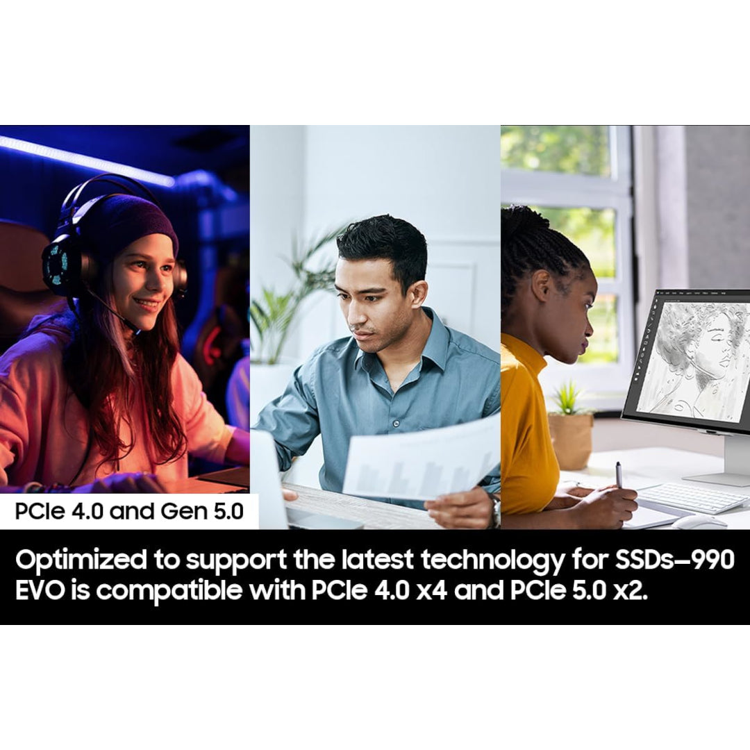 - PCIe 5.0 INTERFACE: The 990 EVO is optimized with the latest technology for SSDs a PCIe 5.0 Interface. This means you get more bandwidth and higher data processing and performance. Overall, it does more to support smooth storage with less power consumption.